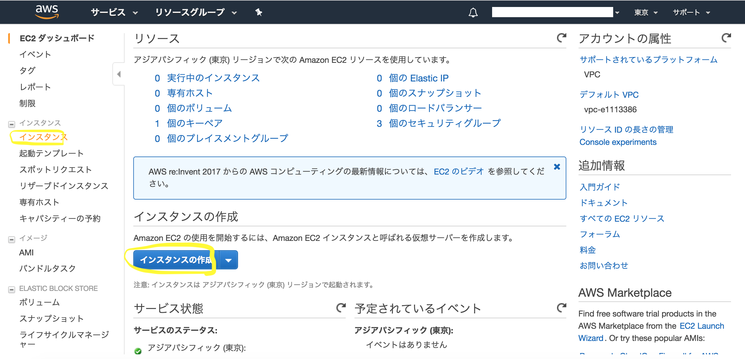 はじめに: EC2→インスタンス→インスタンスの起動 を選択します。