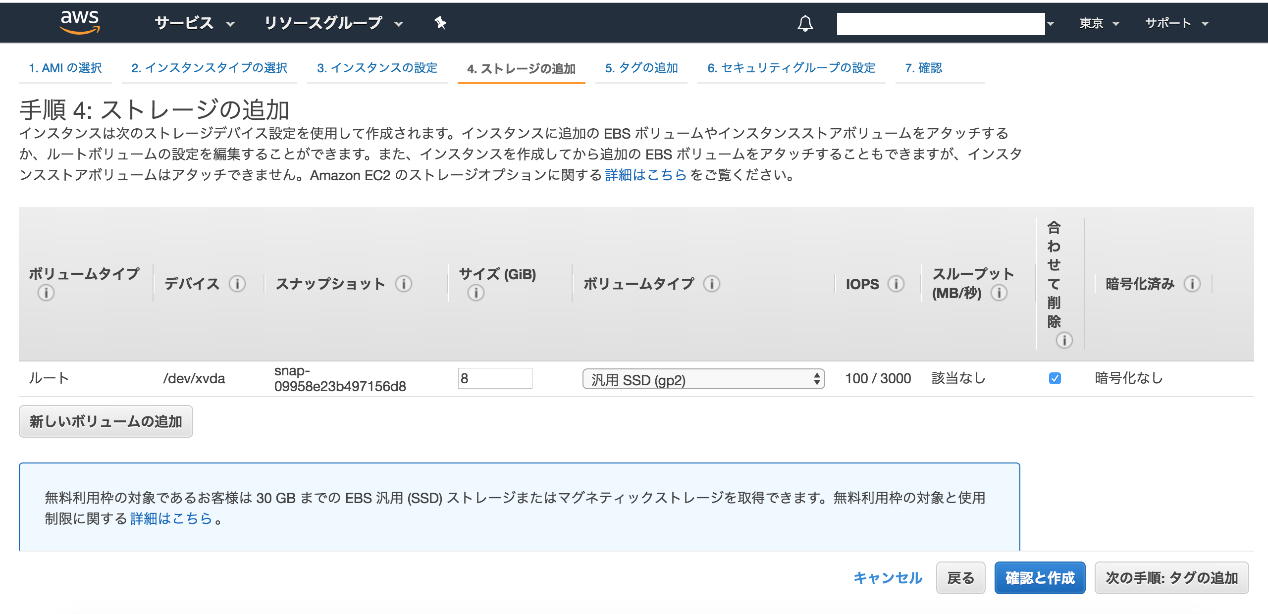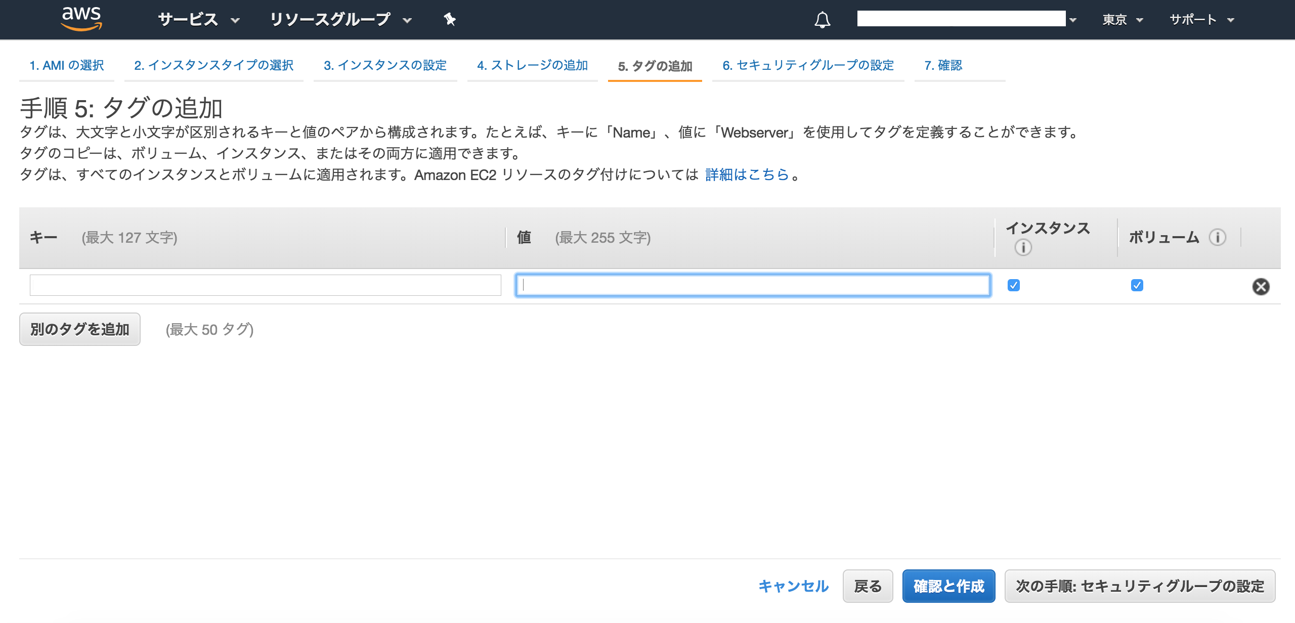 手順5: タグの追加 インスタンスを認識しやすくする為の設定なので任意(なくても良い)。