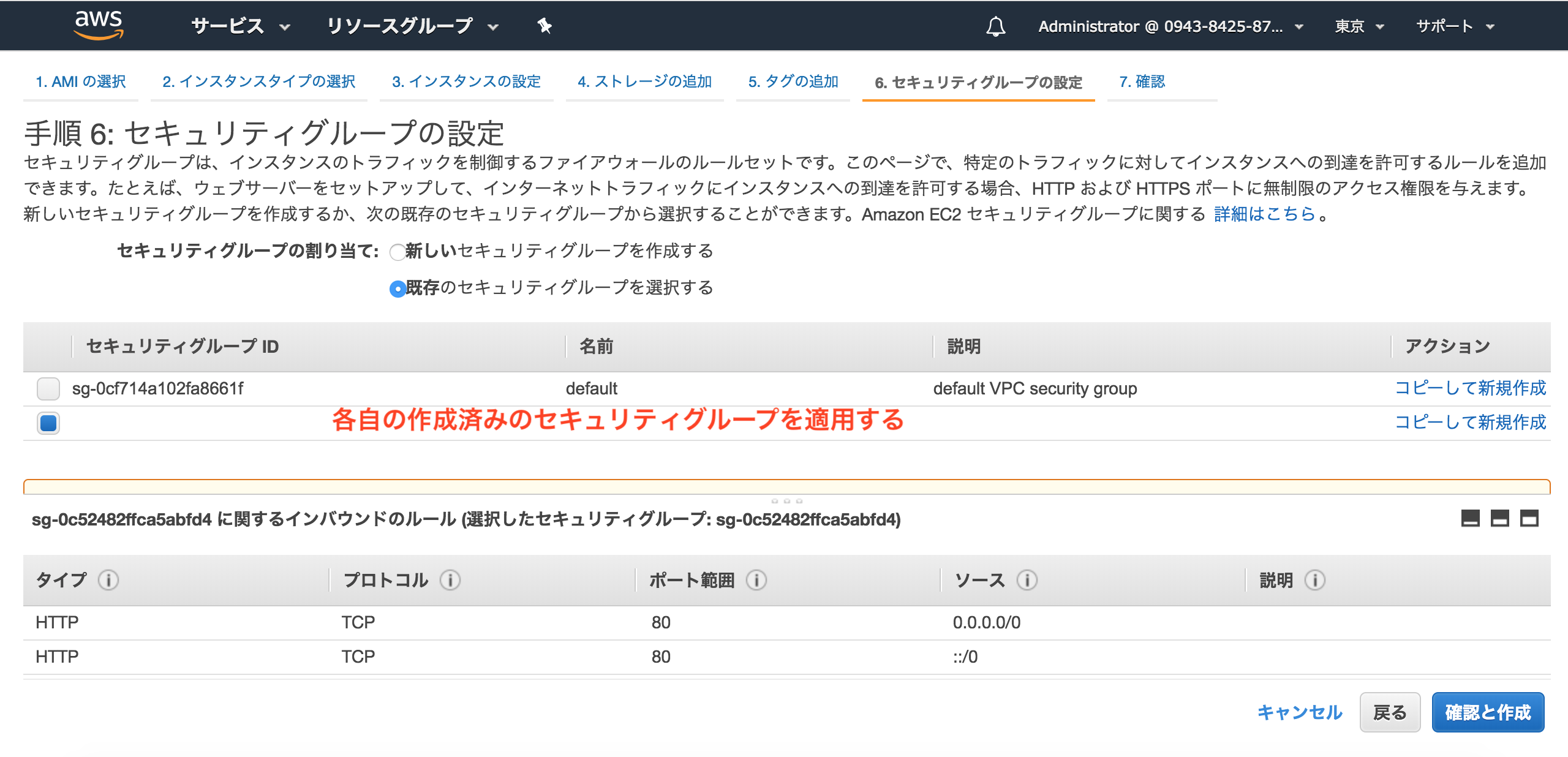 手順6: セキュリティグループの設定