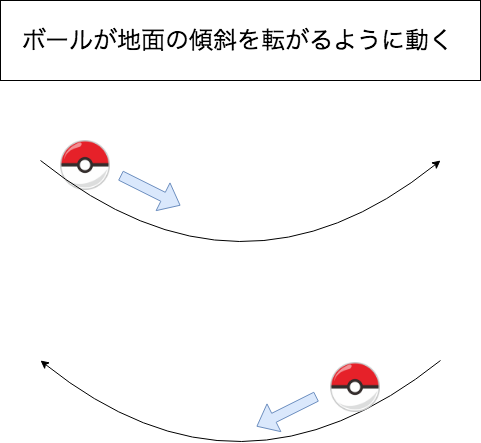 Momentumのイメージ: 更新経路はボールがお椀を転がるような動きをします。