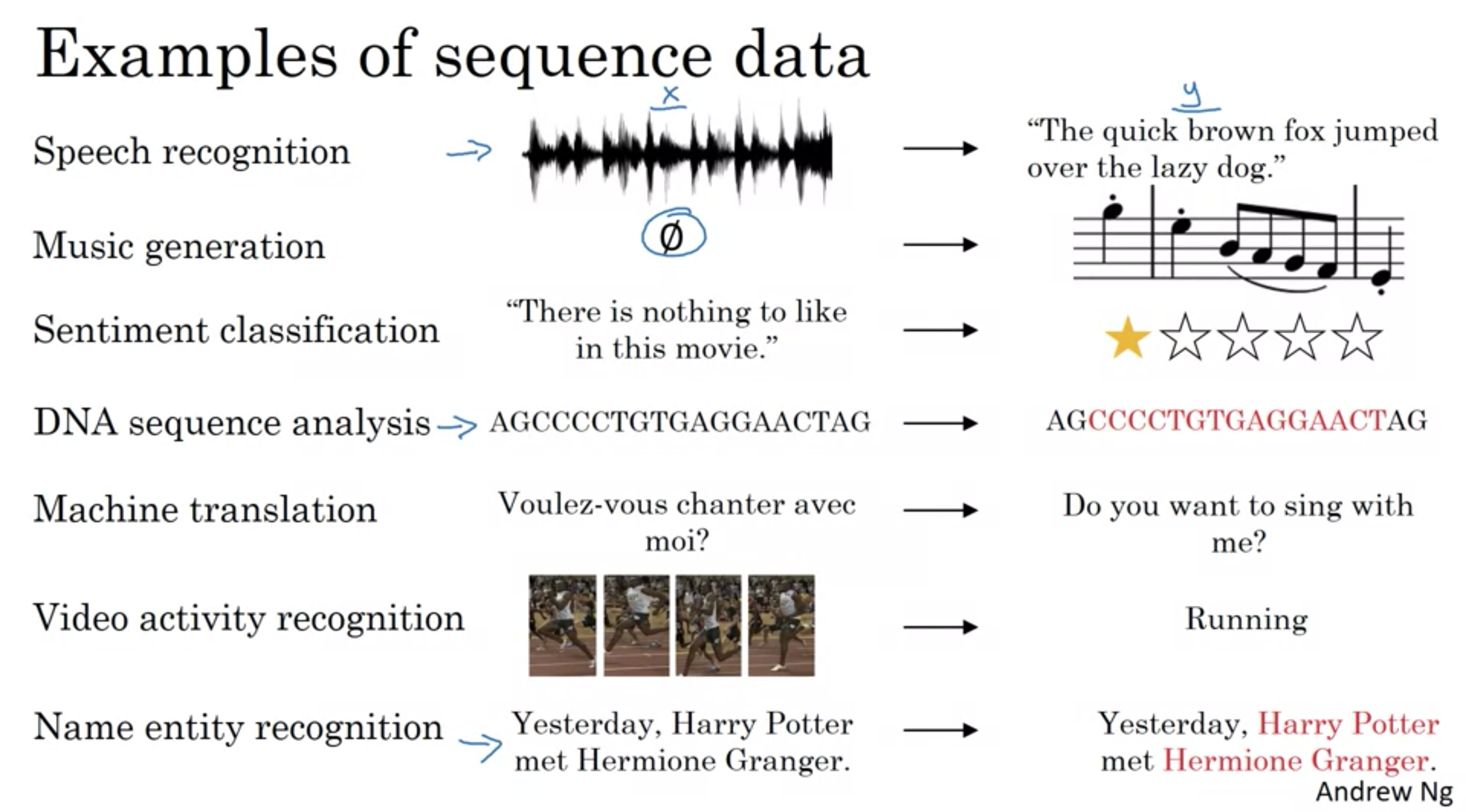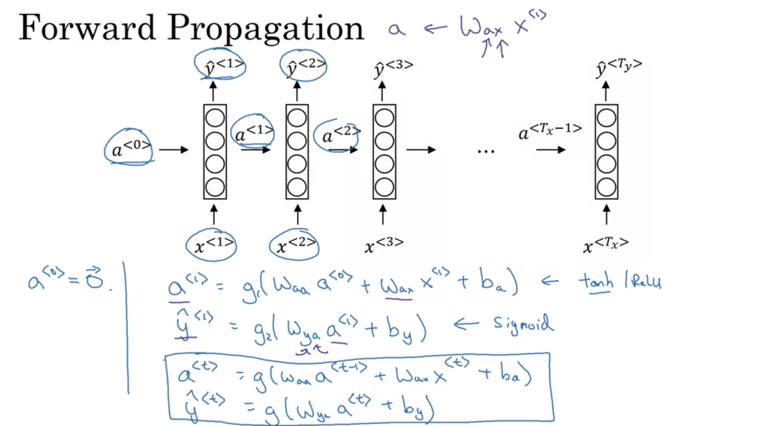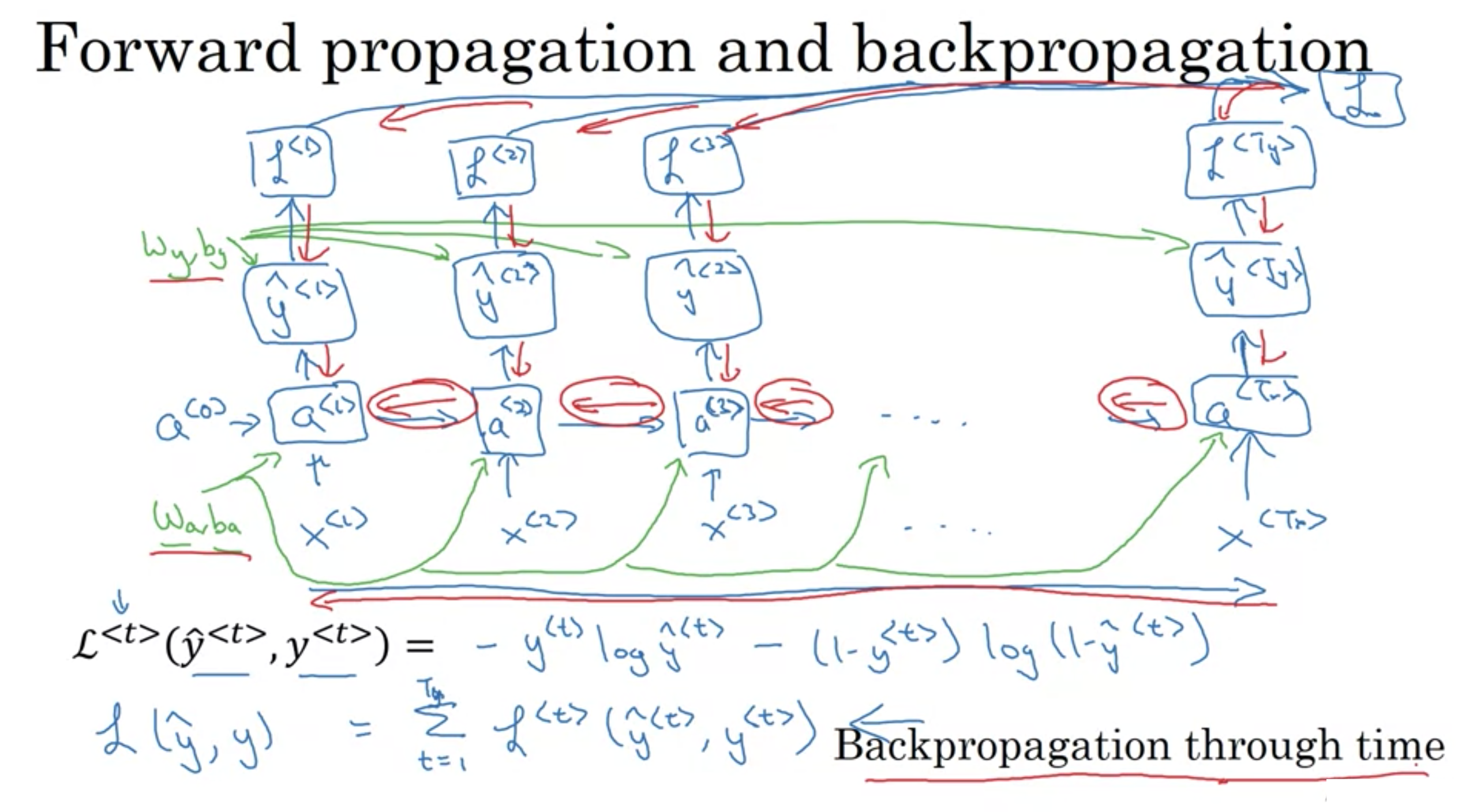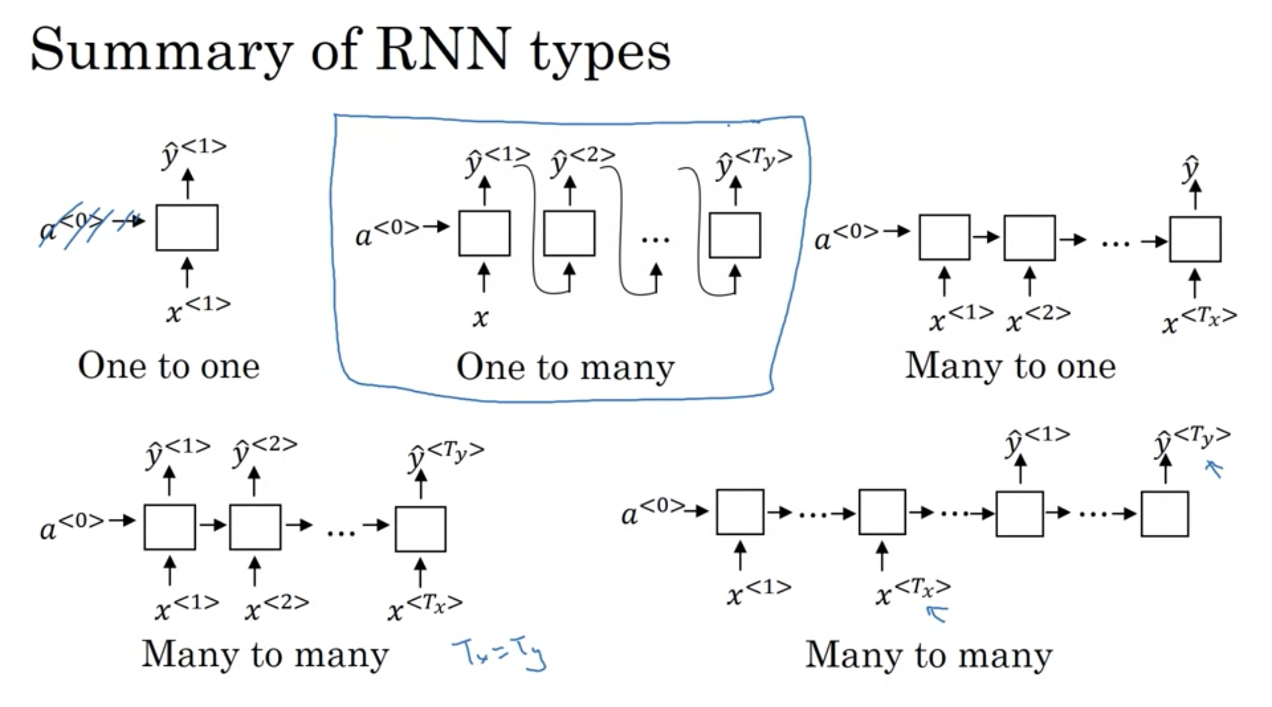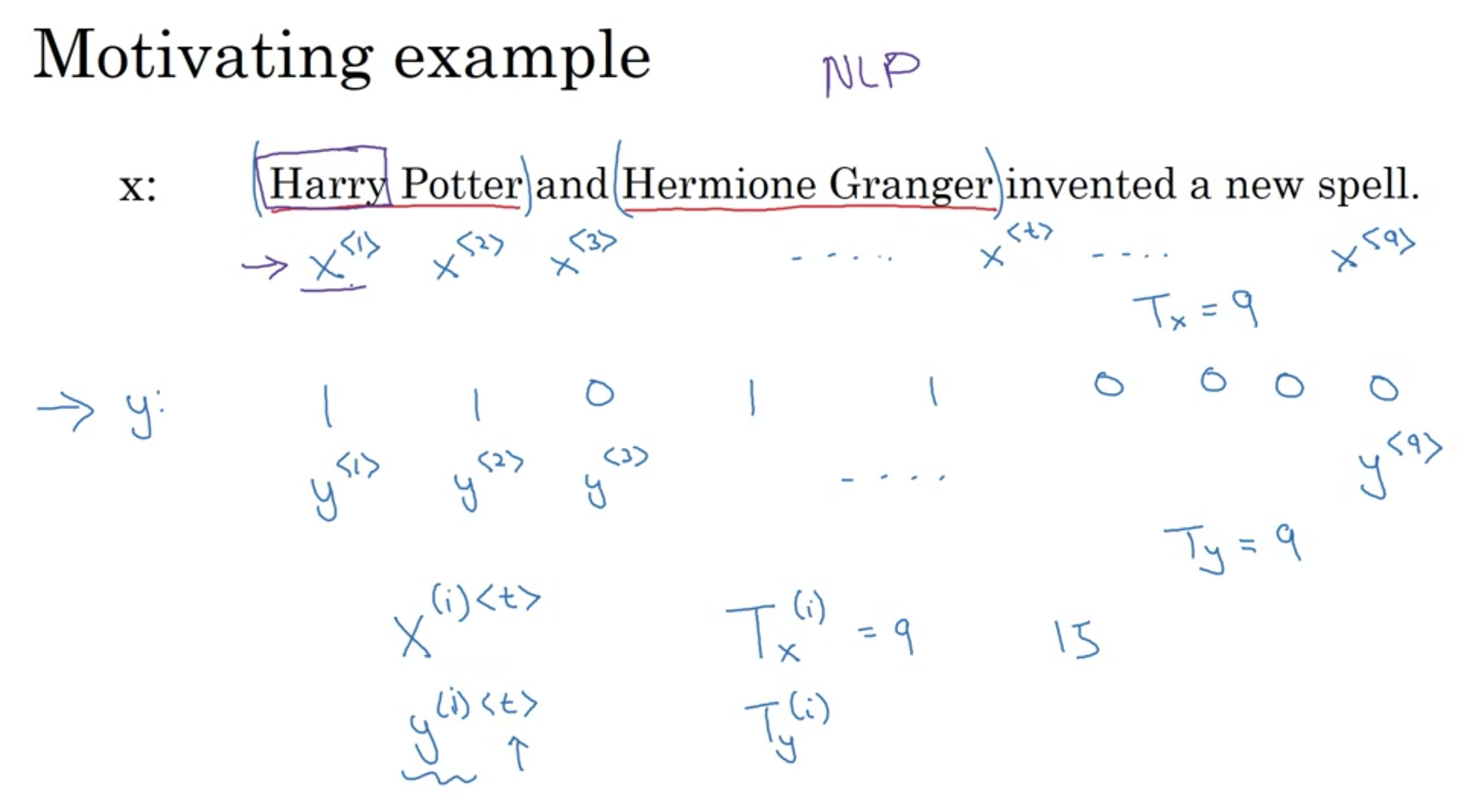 同様に、出力は\(y^{<1>},y^{<1>},...,y^{<9>}\)