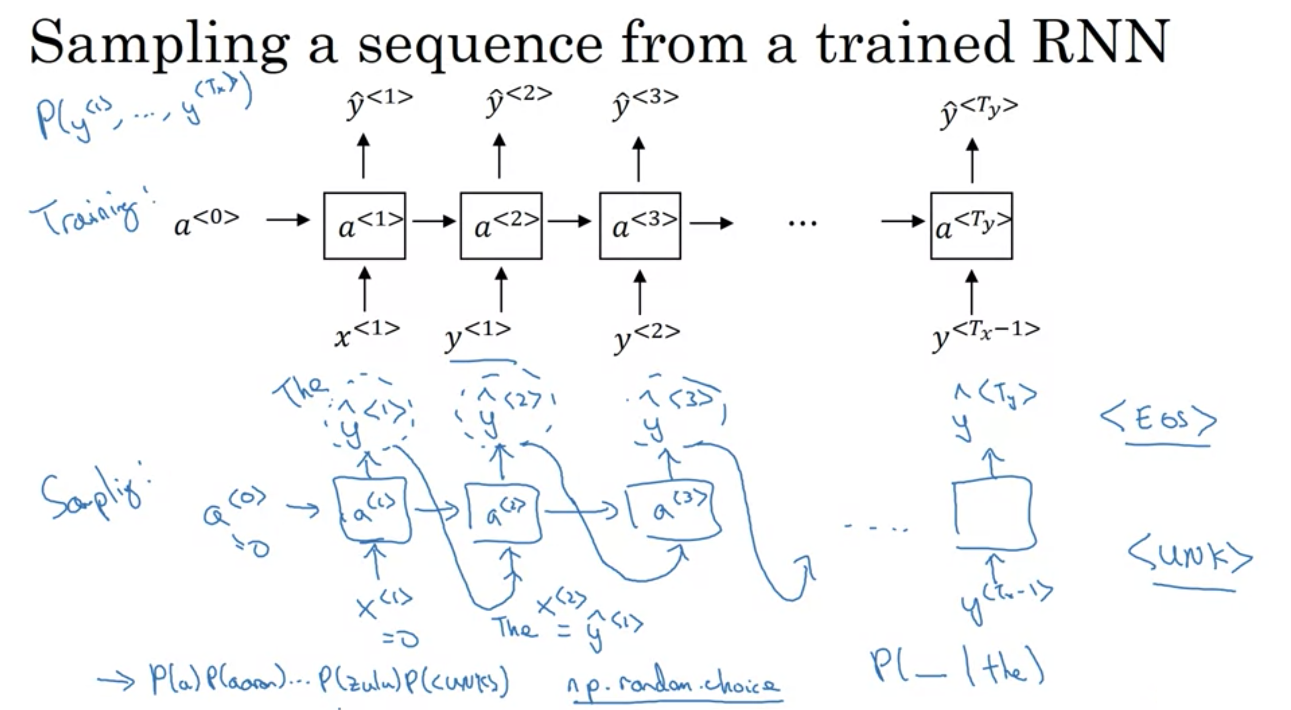 言語モデルは、連続した言葉の中で、直前の言葉を利用して次の言葉の出現確率を予測することができる。どのくらいの頻度で文章が現れるのかを測ることができるため、機械翻訳に活用されています。次の言葉を予測できることのもう一つ良いことは、アウトプットの確率からサンプリングすることで新しい文章を生成できるGenerativeモデルを得られる点です。そのため、学習用データ次第で様々なものを生成することができます。言語モデルでは、インプットデータは連続的な言葉の列です。そして、アウトプットは予測された言葉の列になります。ネットワークを学習させる時、tステップのアウトプットを次の言葉にしたいため、\(o_tt=x_{t+1}\)とします。