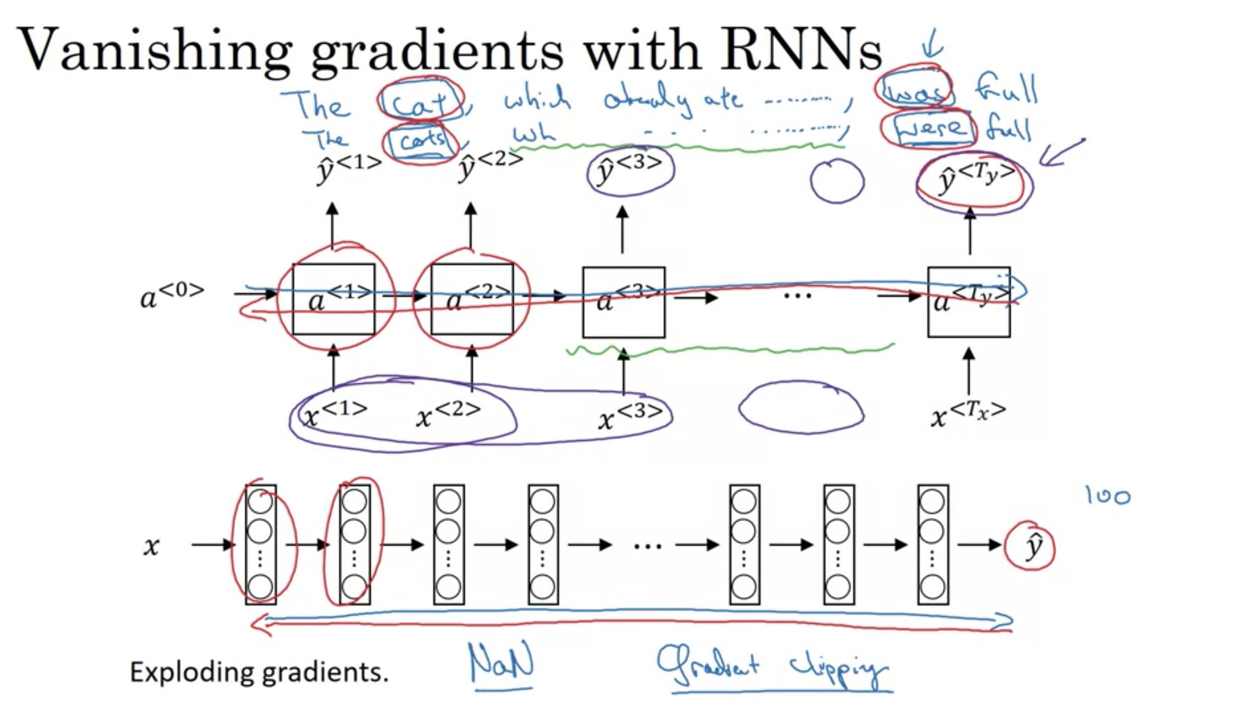 勾配消失と勾配爆発について - 勾配消失と勾配爆発の現象は、RNNでよく見られる。これらの現象が起こる理由は、掛け算の勾配が層の数に対して指数関数的に減少/増加する可能性があるため、長期の依存関係を捉えるのが難しいから。