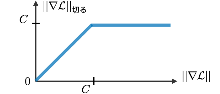 勾配クリッピング - 誤差逆伝播法を実行するときに時折発生する勾配爆発問題に対処するために使用される手法。勾配の上限値を定義することで、実際にこの現象が抑制される。