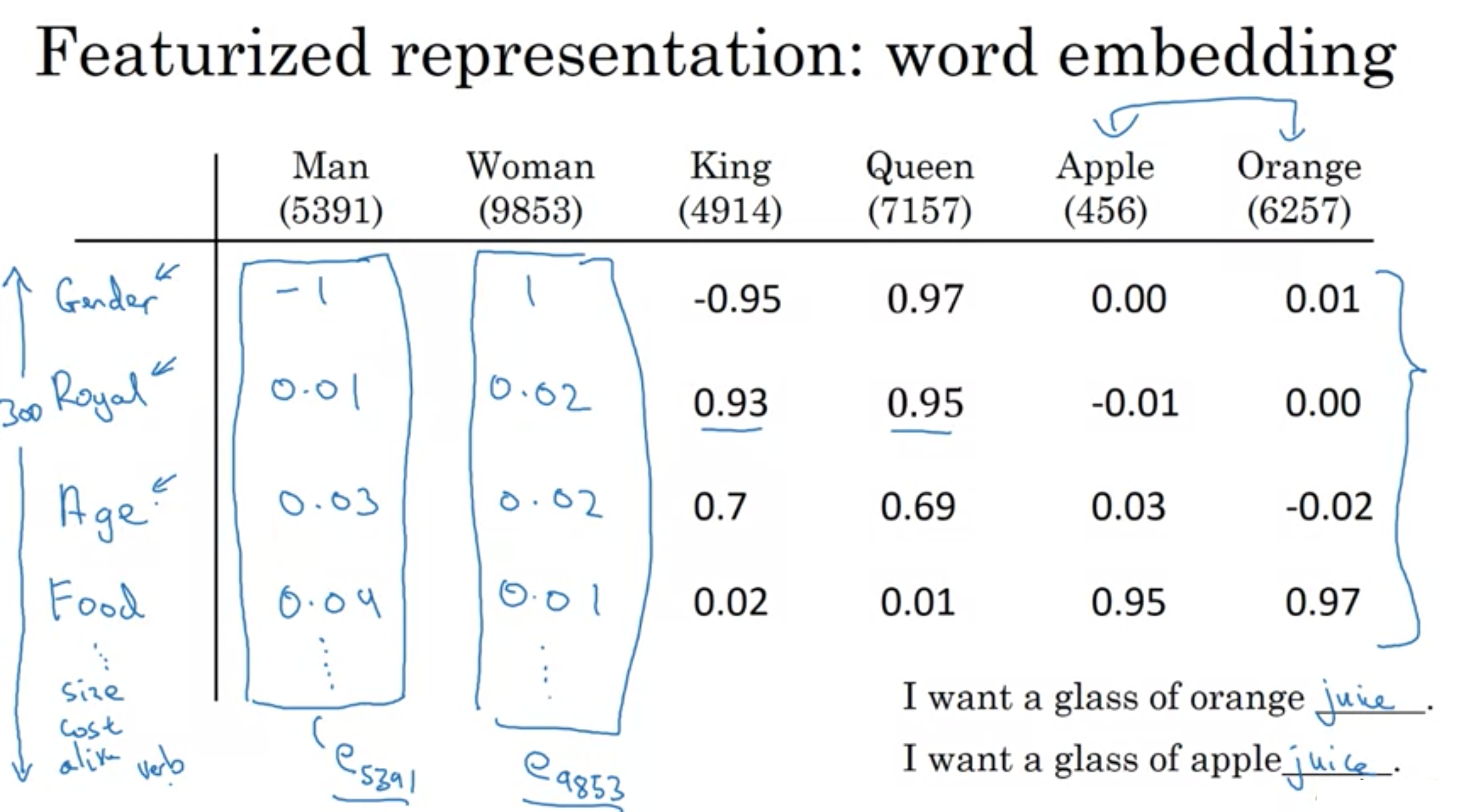 => Gender, Royal, Age, Foodなど、項目との関連性を表す単位ベクトルが同じものを見れば良い
