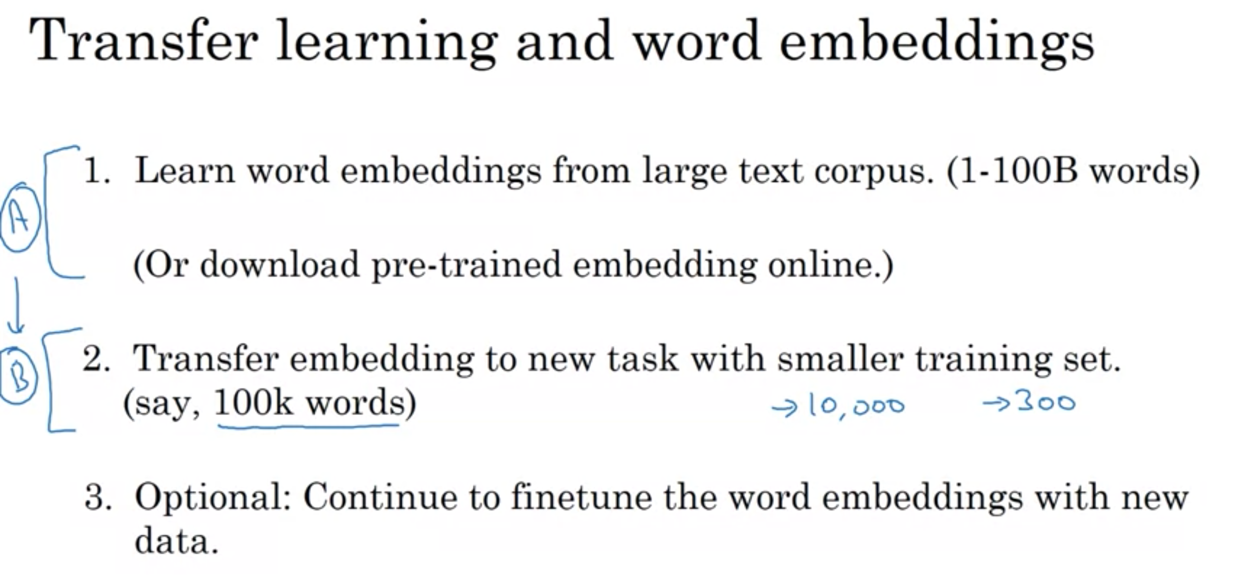 2. 学習(またはダウンロード)後に、小さいトレーニングセット(例えば、単語数10万かそれ以下)しかない新しいタスクに転移する