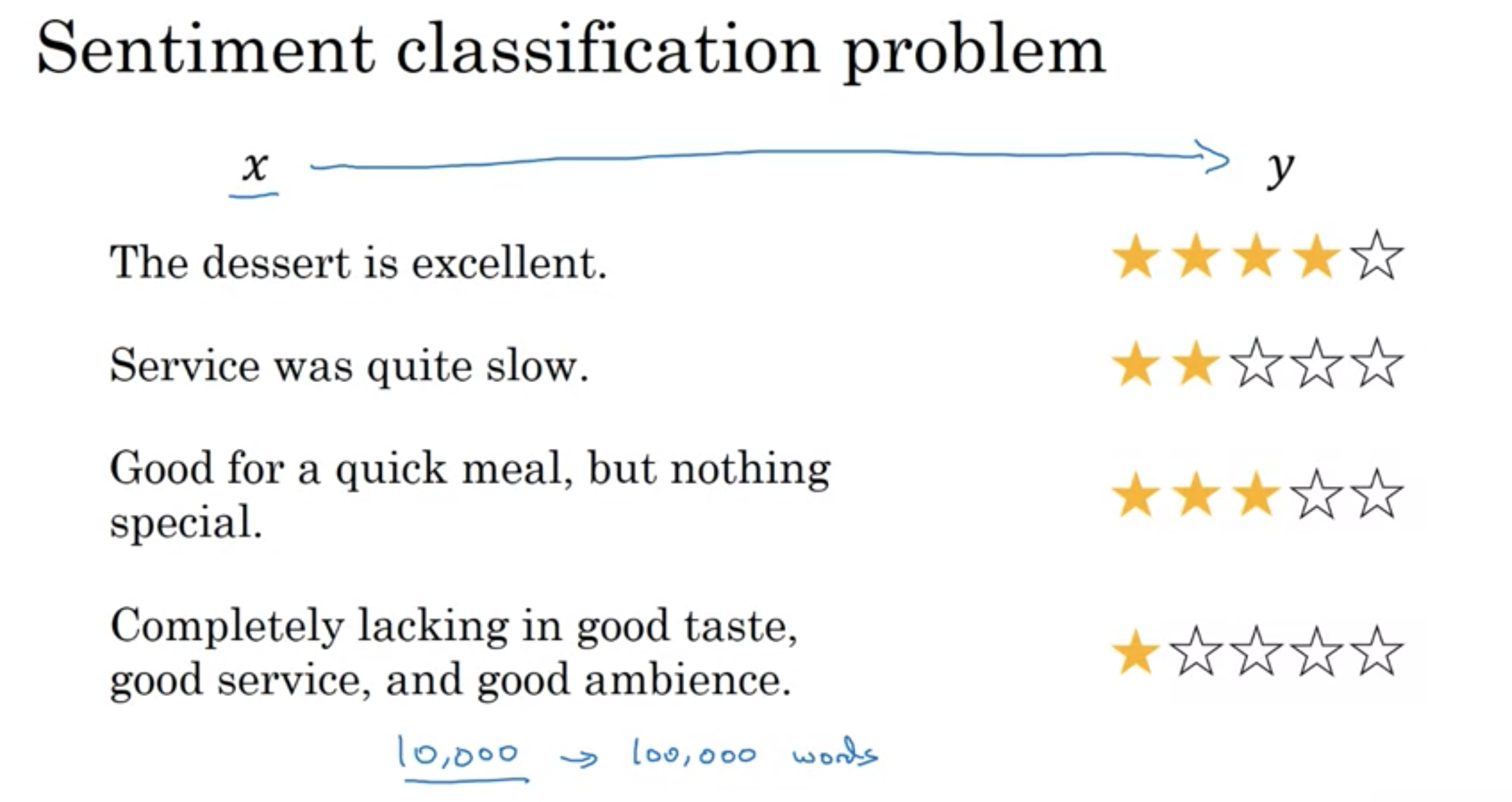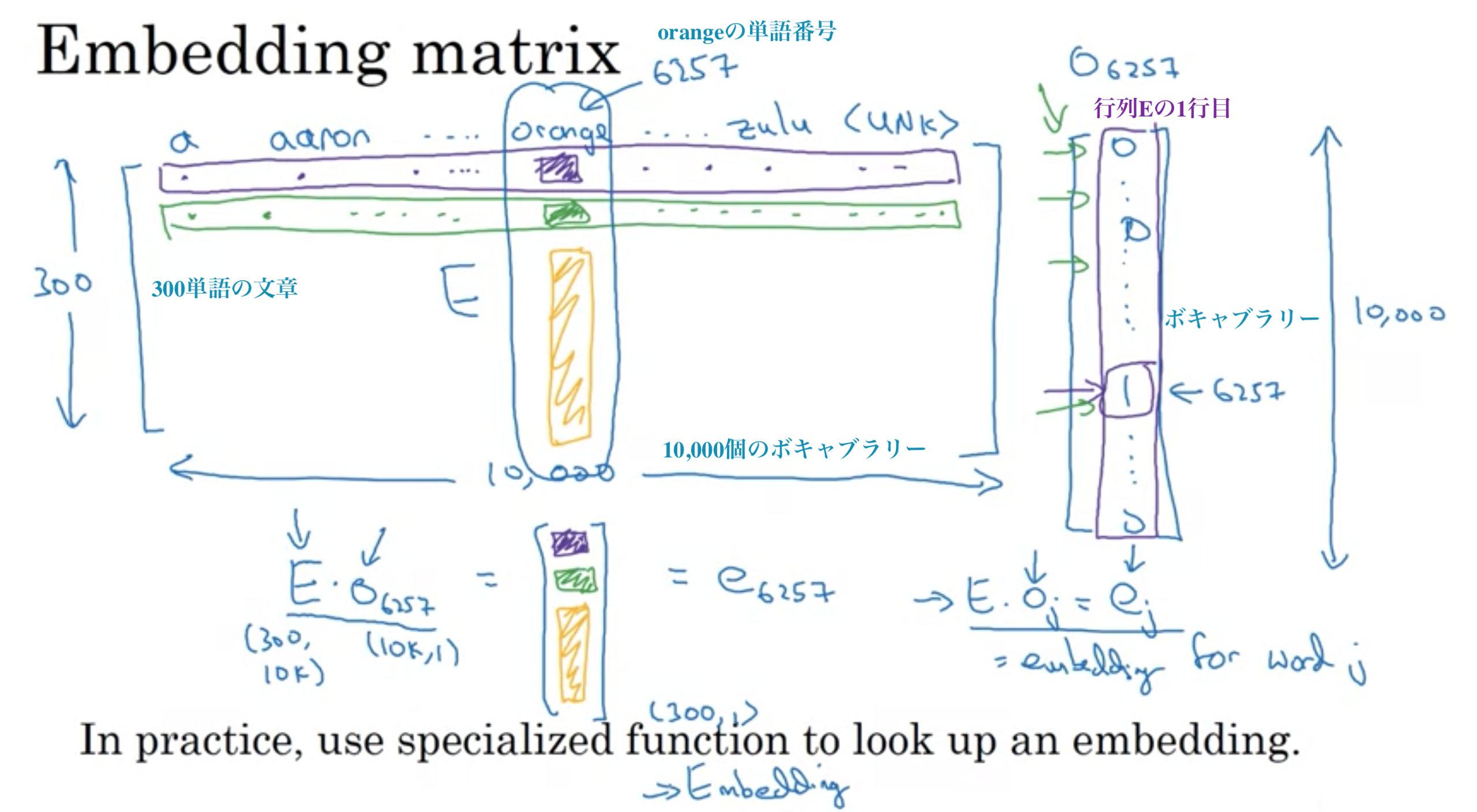 例えば、10,000語を含むボキャブラリーを使用(\(n_x\)=10,000)して、ミニバッチ数が20(m=20)、タイムステップが10(\(T_x\)=10)の場合、入力の次元は(10,000, 20, 10)になる。