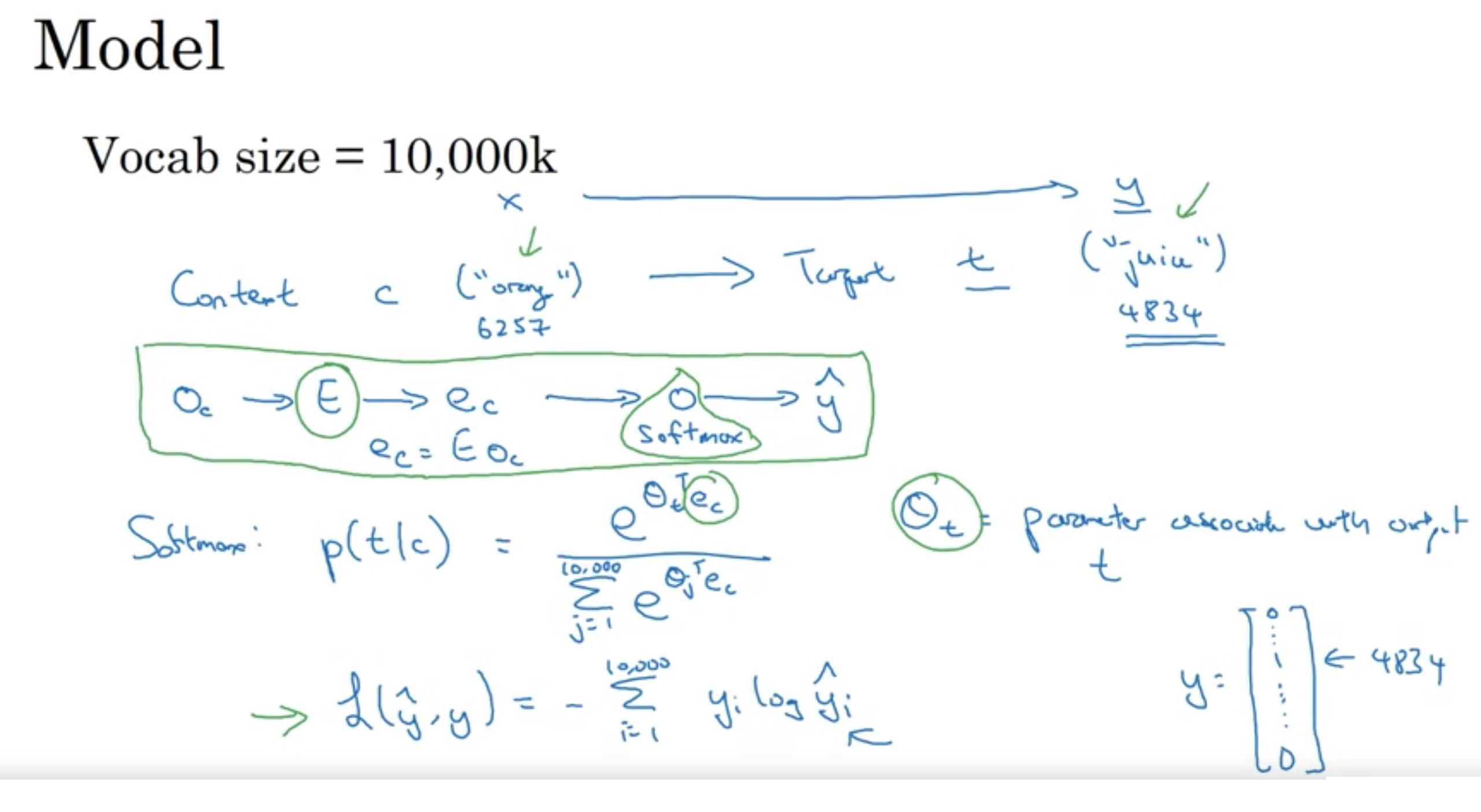 ・スキップグラムの主な問題は計算速度 (シグマによる部分和により、ボキャブラリの数だけ加算を行わなければならない)