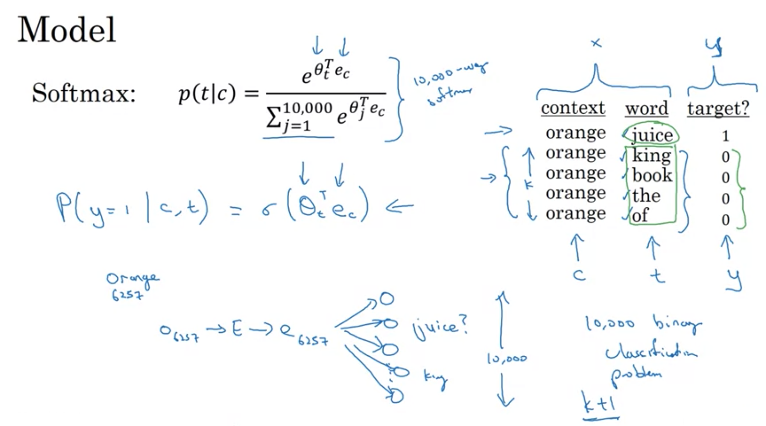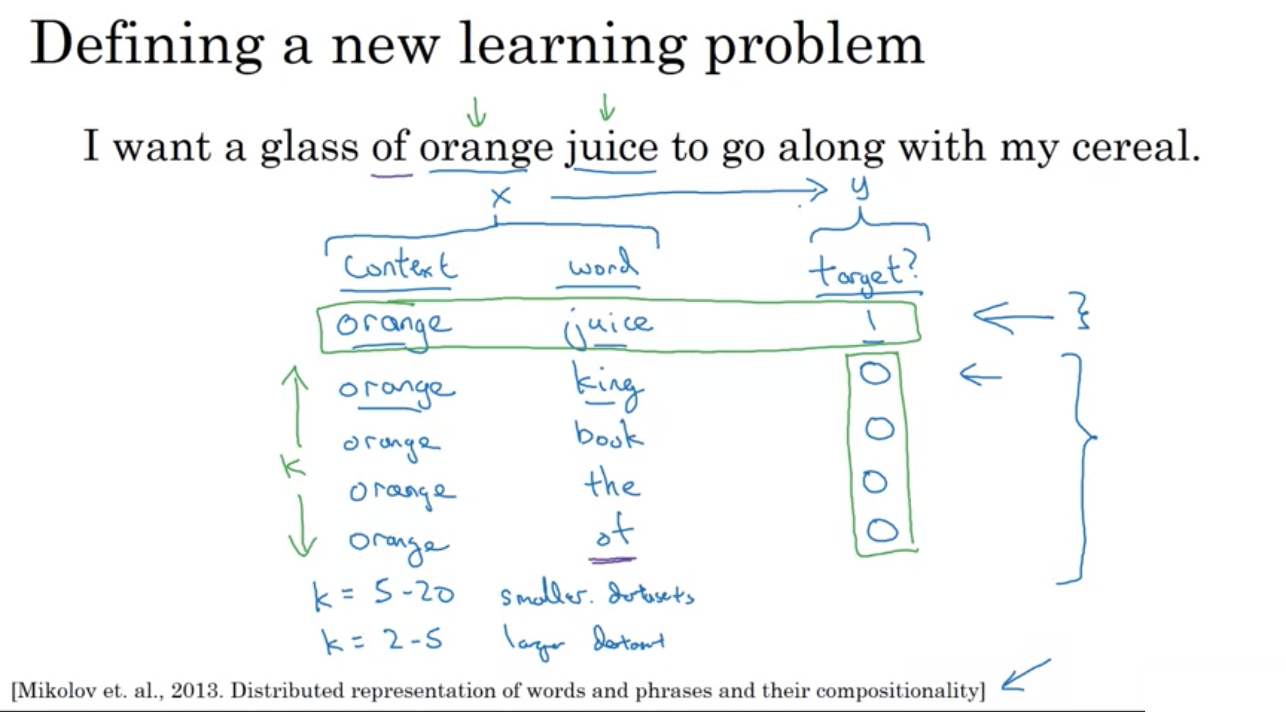 コンテキスト単語からターゲット単語のマッピングを学習する教師あり学習を訓練